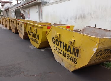Todas as caçambas seguem normas de segurança e descarte ambiental, com destinação em aterros licenciados pela Prefeitura e CETESB.